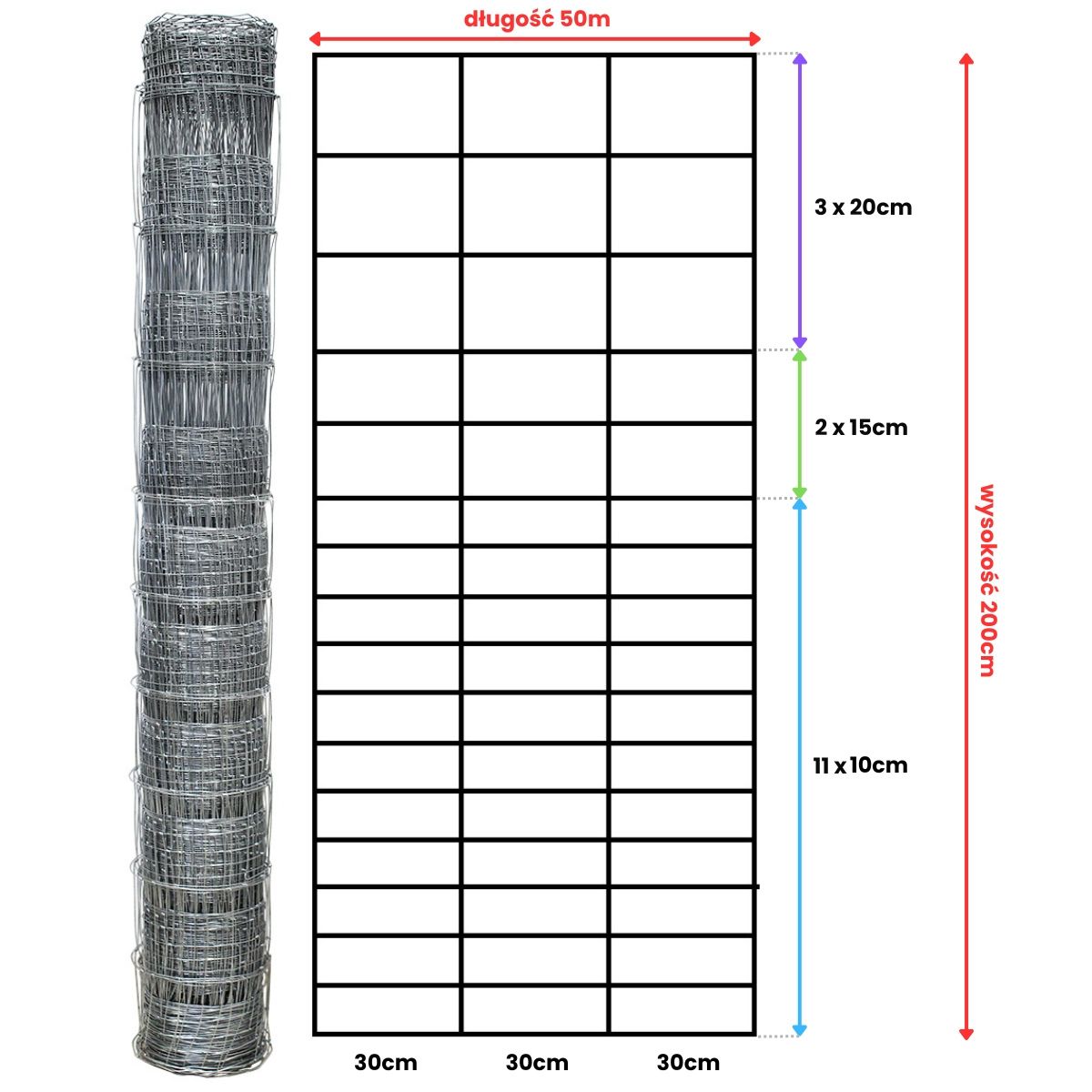 odległość drutów pionowych co 30 cm